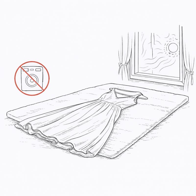 - Protect the area if treatment is delayed: Loosely cover the stained section with clean, breathable fabric and avoid folding the dress at the stain point.