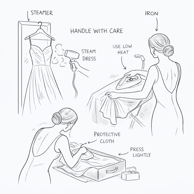 - Use natural steam: Hanging the dress in a steamy bathroom can help soften light wrinkles naturally.