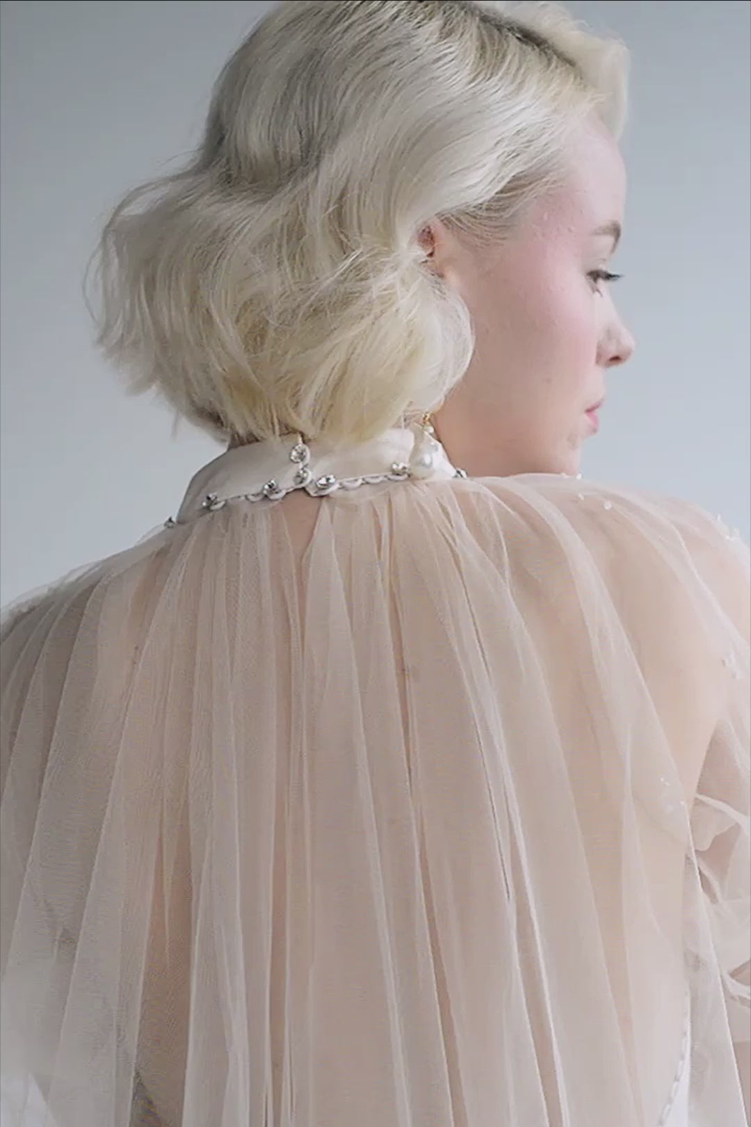 Dress details: tulle cape with buttons (detachable addition to the Danu dress)